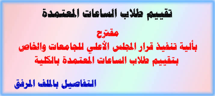 مقترح بألية تنفيذ قرار المجلس الأعلي للجامعات والخاص بتقييم طلاب الساعات المعتمدة بالكلية